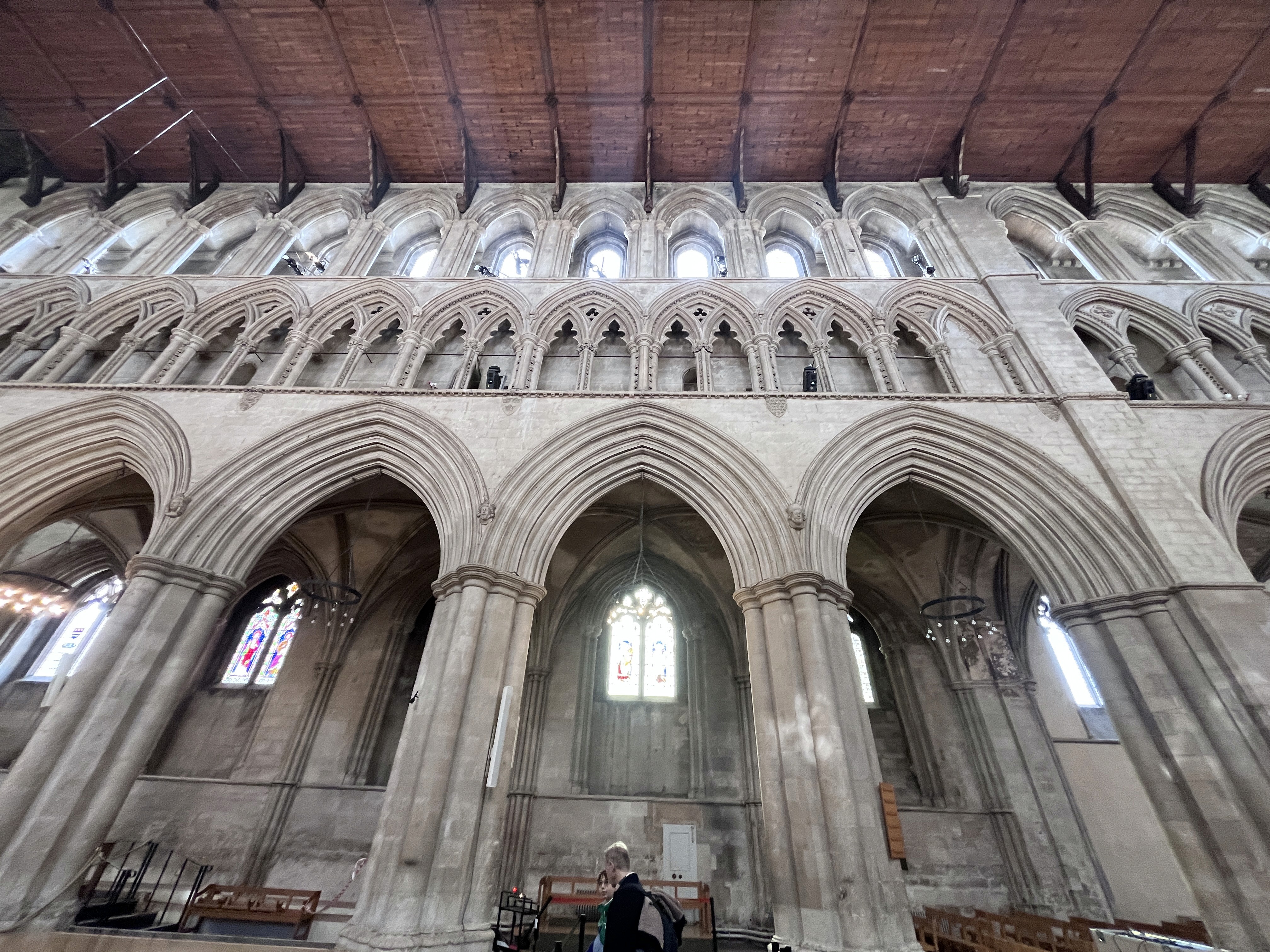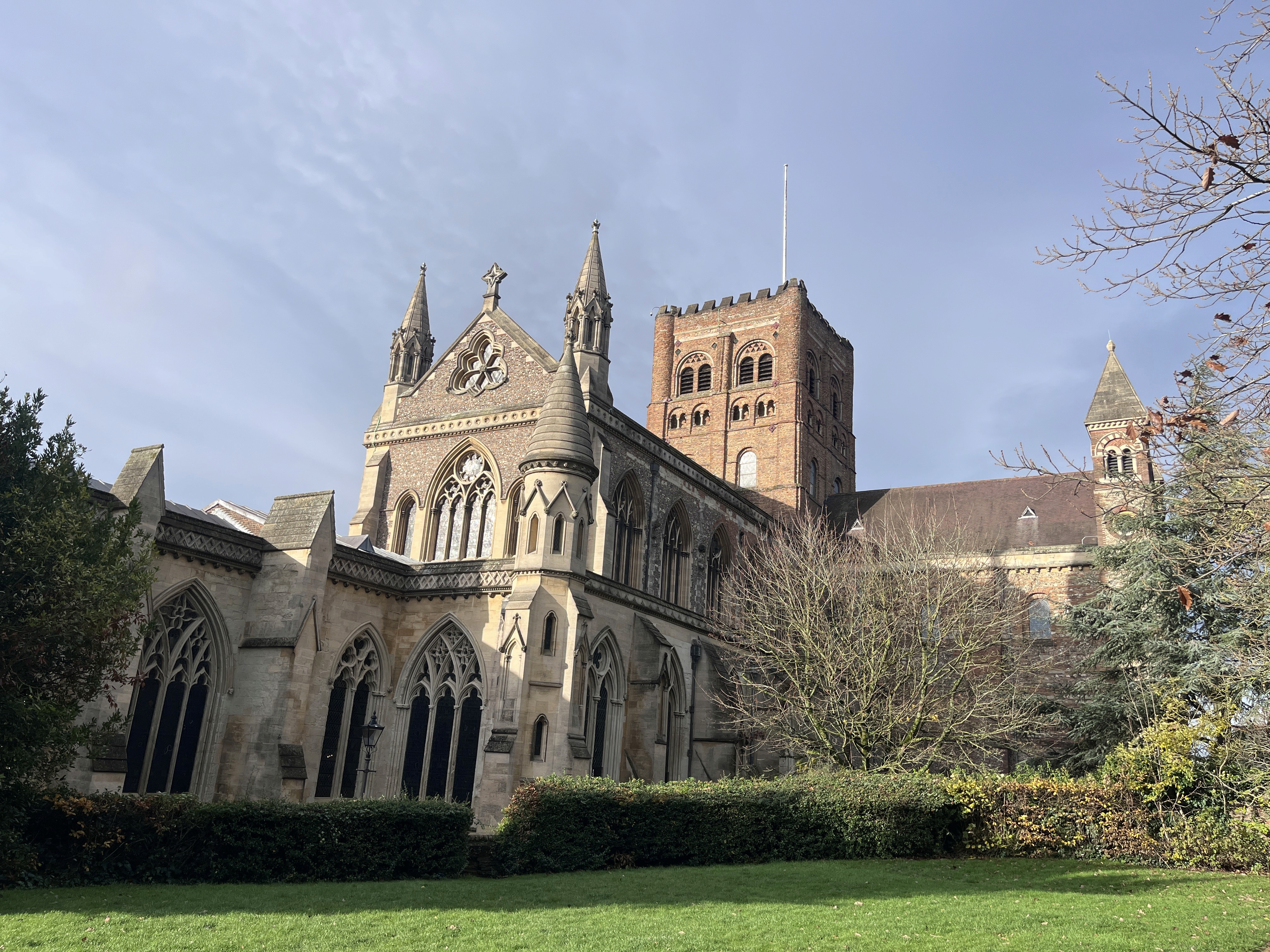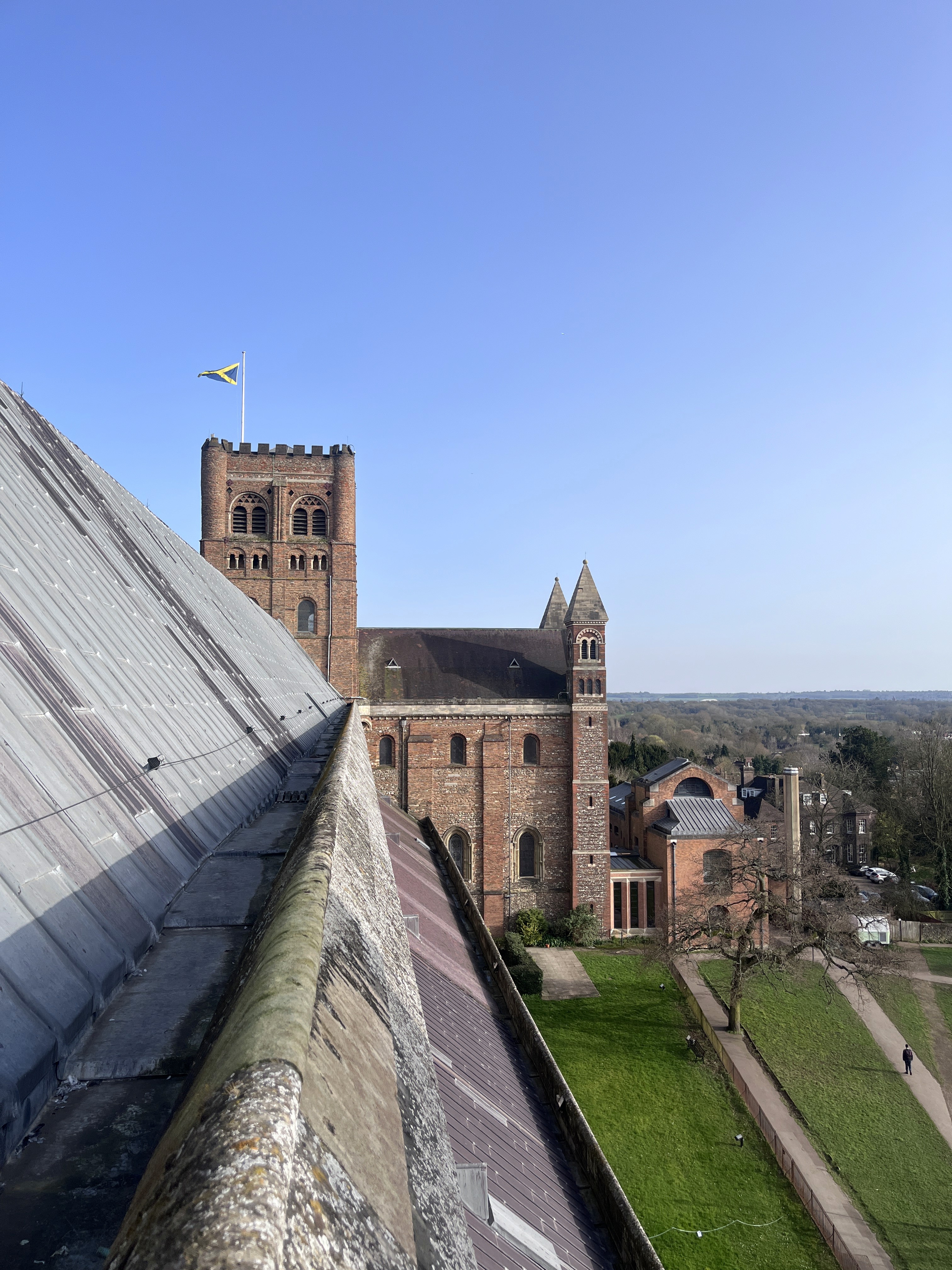 The Cathedral has a layered architectural history, reflecting over 1,000 years of development and change. The Tower is the oldest of any English Cathedral, built in the 11th Century of Roman bricks from the nearby city of Verulamium.